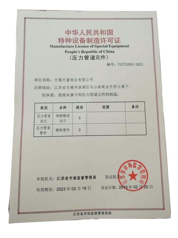 無(wú)錫天富鋁業(yè)專業(yè)生產(chǎn)各類焊接鋁管、無(wú)縫彎管、任意角度無(wú)縫鋁彎管、焊接鋁彎管、鋁三通(鍛件)、鋁肩圈、鋁縮接、鋁管帽、法蘭、焊接襯圈、“O”型圈、非標(biāo)無(wú)縫鋁彎管、接管。可根據(jù)用戶需求定制各類彎管、肩圈、縮接、管帽、襯圈、接管,可按照用戶圖紙定制。同時(shí)也承接不銹鋼、碳鋼及其他材料的彎管、肩圈、縮接、管帽、襯圈、接管等。我們擁有壓力管道設(shè)備生產(chǎn)許可證, 可從事特種設(shè)備的制造!